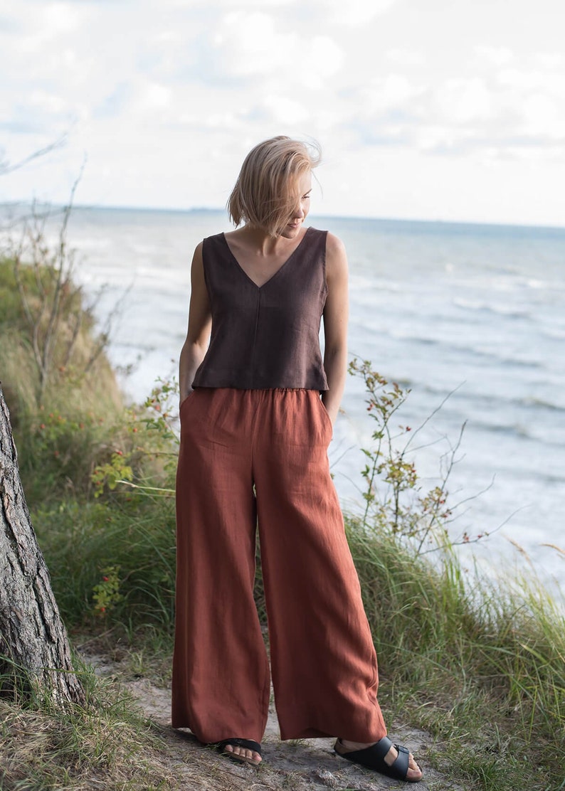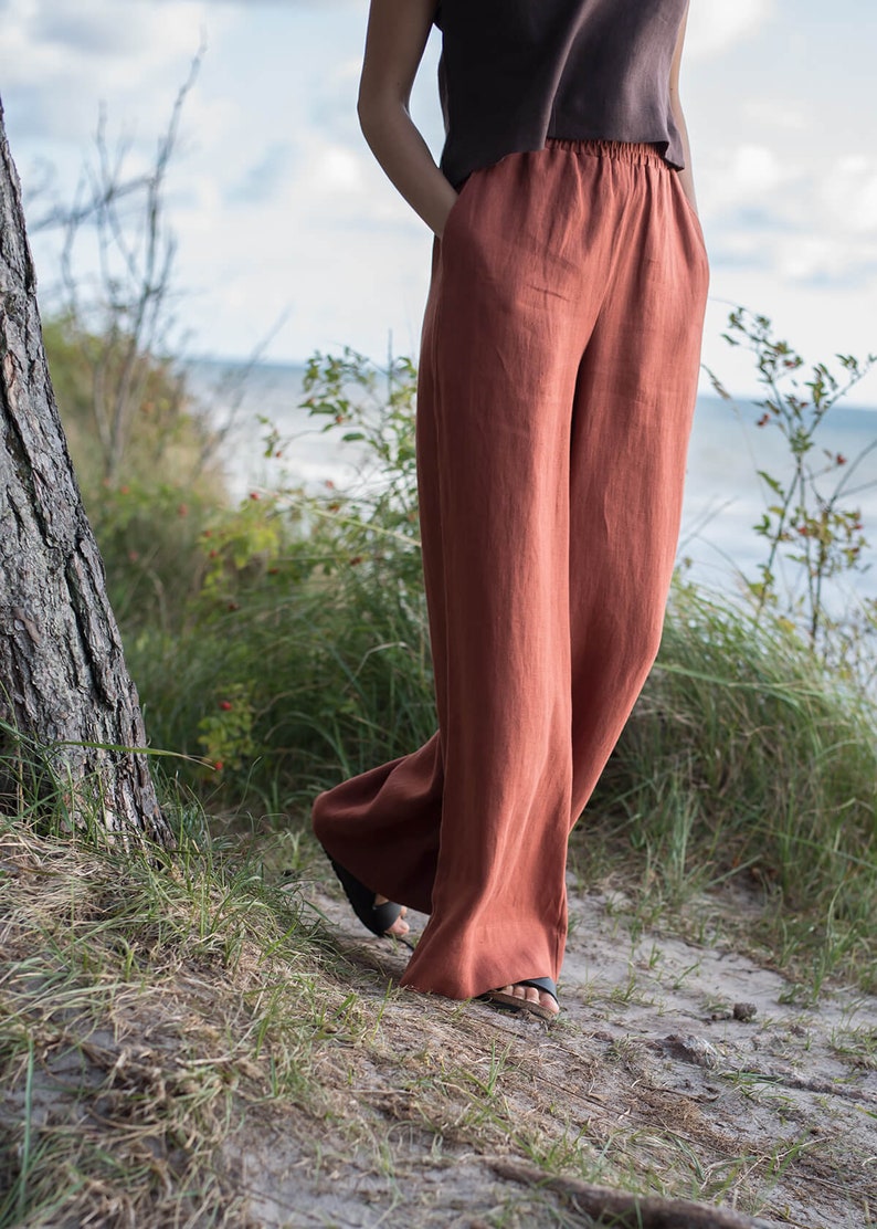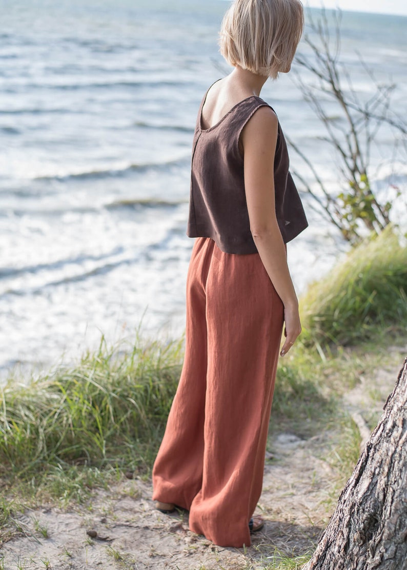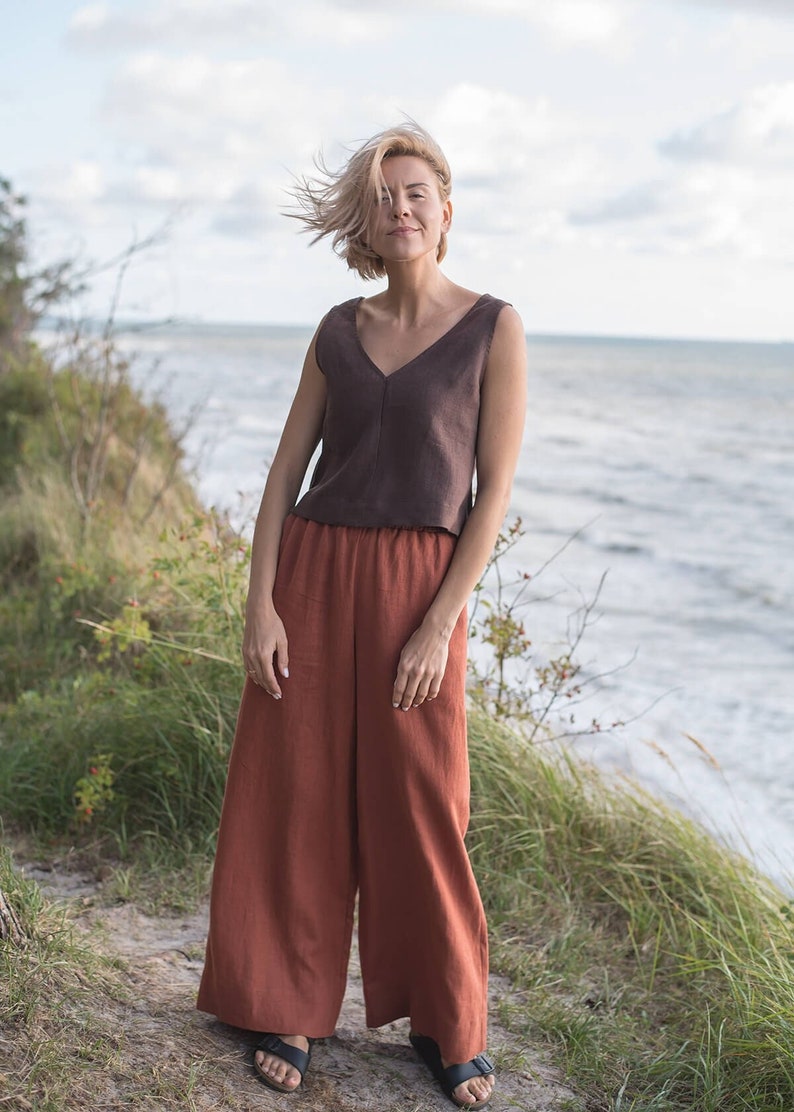 Wide linen pants AMY – a team of elegance and convenience serves you everywhere: at home, in the city, and during vacation. A perfect choice for the warm season, active days, and every moment you wish for an effortless, feminine look.